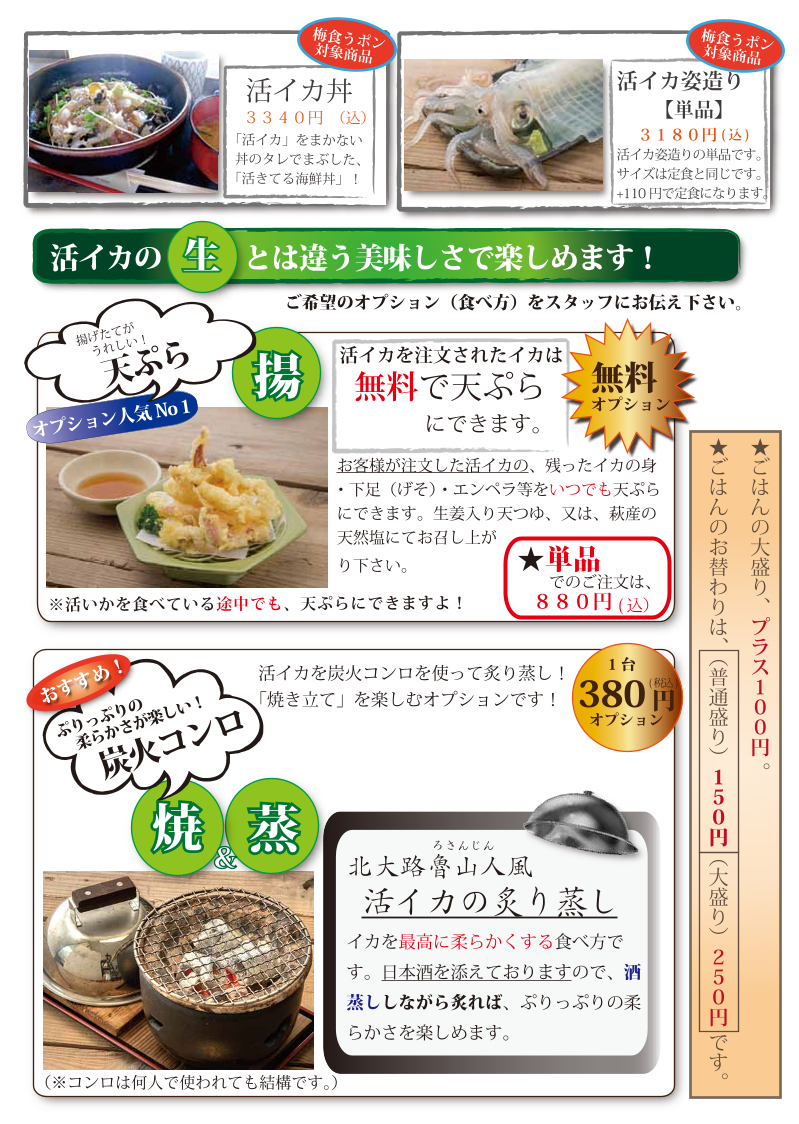 Introducing Umenoha, a culinary gem located in Susa, Hagi, Yamaguchi, Japan, renowned for its extraordinary seafood offerings, especially its fresh 活イカ定食 (live squid set meal). Here, guests can indulge in the exquisite 須佐男命いか (Susa deity squid), caught fresh by local fishermen using traditional methods. The squid's transparent texture and vibrant flavor truly stand out, offering a dining experience reminiscent of the sea's very essence.
